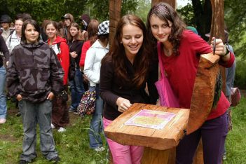 V pátek 18. června vládlo sychravé, deštivé počasí. To ale nemohlo překazit akci, která s přírodou velmi úzce souvisí. V místě duchovní Brány do Českého ráje pod rozhlednou Hlavatice byla otevřena za účasti pozvaných hostů, žáků a studentů základních a středních škol nová naučná stezka, která nese název STROM – UČITEL. „Před dvěma lety zde vznikla první část v podobě sedmi soch z různých druhů dřeva, které tvoří bránu, chtěli jsme stromy více lidem představit, proto jsme letos realizovali naučnou stezku. Vše je prací studentů semilského waldorfského lycea. Ti přišli i na nápad, že průvodci stezkou budou napravený uličník Tomáš a víla Eulálie. Každý strom má svého skřítka, který svůj strom návštěvníkům představí. Na jednotlivých zastaveních stezky jsou umístěny dřevěné knihy s informacemi o stromech, můžete si tu i sednout a přemýšlet o věcech, které jsou nad námi,“ uvedla Iveta Sadecká, výtvarnice, která s dětmi a studenty projekt Brány do Českého ráje realizovala.