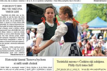 Kauza trhů na náměstí, rozšíření městské památkové zóny, zahájení turistické sezony v Českém ráji, situace v Panochově nemocnici od května, otevření další části cyklostezky mezi Lestkovem a Lomnicí nad Popelkou, ohlédnutí za vyskeřskou Traktoriádou 2011, vyčerpávající přehled kulturních pozvánek, přehled výstav a program kina. To, včetně kompletního sportovního servisu, je stručný přehled obsahu v pořadí devátého vydání novin Turnovsko v akci v letošním roce. Součástí novin je kulturní a sportovní servis, program kina a výstav a společenská kronika.