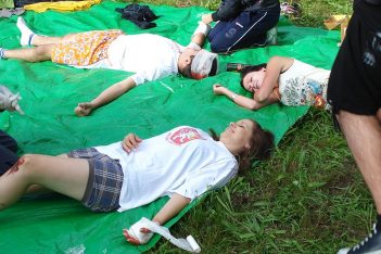Ano, je to jako z hororu, ale naštěstí to bylo všechno jen jako. K vidění toho bylo mnohem více, a to v pátek 24. června v areálu Střední zdravotnické školy v Turnově, kde se konal již 3. ročník mezinárodní soutěže v poskytování první pomoci. Naše německá partnerská škola z Niesky a žáci druhých a třetích ročníků SZŠ Turnov si pod vedením svých odborných učitelek připravili modelové situace, ve kterých si soutěžní družstva musela poradit s různými typy poranění, která vzniknou například při výbuchu pyrotechniky, požáru, hromadné bitce, bouřlivé oslavě s alkoholem a halucinogenními houbami, při práci v lese, nebo při pobytu u vody.