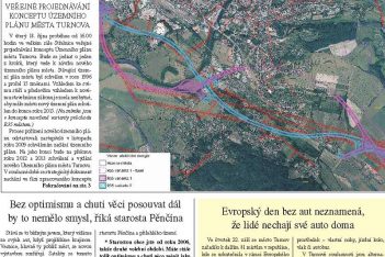 Letí to, letí, už jen pět vydání novin a je zde konec roku… V pořadí 20. číslo novin TvA přináší především dvě důležité informace pro občany Turnova. V úterý 18. a ve čtvrtek 20. října budou veřejně projednávány dva dokumenty – koncept územního plánu města a severozápadní odlehčovací komunikace centra města. Obojí je důležité pro další život Turnova. V novinách mj. přinášíme původní rozhovor se starostou Pěnčína Karlem Bičíkem, poznámku na téma Evropského dne bez aut, zprávu o historickém rozhodnutí o výstavbě koupaliště v Maškově zahradě a další texty z aktuálního dění na Turnovsku. Součástí novin je i kulturní a sportovní servis a společenská kronika.