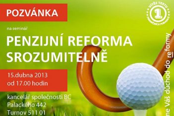 V pondělí 15. dubna v 17.00 hodin se v kanceláři společnosti Broker Consulting v turnovské Palackého ulici čp. 442 (v domě pod Skaličkou) uskuteční výjimečný seminář na téma penzijní reformy. Přednáší Ing. Michal Koubek, ředitel Broker Consulting, a. s.! Účast je bezplatná, probíraná témata: Proč je třeba provést reformu penzijního systému, co jsou často zmiňované tři pilíře, pro koho je reforma výhodná a pro koho ne, jak se správně rozhodovat. Udělejte si asi hodinu a půl čas ve svém vlastním zájmu, účast nikoho k ničemu nezavazuje a ještě se poučíte!