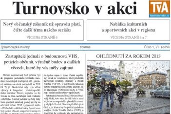 Šťastná sedmička? Doufejme, že ano. Ve středu 8. ledna vyšlo první letošní vydání novin TvA, které zahájilo sedmý ročník fungování tohoto periodika (internetový server TvA funguje ještě o rok déle). V průběhu roku 2013 jsme mezi obyvatele Turnovska distribuovali 319 tisíc výtisků novin. Hlavní poslání periodika je stále stejné: Být k dispozici jako zprostředkovatel informací a nutit čtenáře k přemýšlení. V prvním letošním vydání novin se čtenáři mohou ohlédnout za rokem 2013, je zde souhrn nejdůležitějších událostí v regionu – podle hlasování na webu TvA vedou akce Antimony 70 v Rovensku pod Troskami, volba nového starosty Turnova a rozhodnutí o fúzi turnovské a liberecké nemocnice. Noviny přinášejí i vyčerpávající výčet pozvánek na kulturní a sportovní akce i oblíbenou společenskou kroniku.