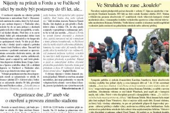 Vše kolem zahájení provozu zimního stadionu v Maškově zahradě, to je stěžejní materiál aktuálního vydání novin TvA. Čtenáři tak dostanou poměrně vyčerpávající informaci, jak bude otevření stadionu ve středu 28. října probíhat. V novinách je také ohlédnutí za třetím ročníkem „Koulení chleba“ ve Struhách, je zde záznam projednání záměru výstavby sjezdu a nájezdů na průtah Turnovem v Ohrazenicích u Fordu a ve Fučíkově ulici, v informacích z radnice si nezapomeňte přečíst kompletní informace o nakládání s komunálním odpadem od ledna 2016 (pytle se separovaným odpadem budou občanům vyvezeny od domů již jen 4. listopadu a 2. prosince!). Má knihovna své místo i v 21. století? Samozřejmě! Proto bychom se o novém umístění té turnovské měli začít vážně bavit!