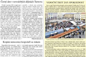 Osmý ročník vydání novin TvA je uzavřen. Statisticky to obnáší od začátku již 201 vydání novin, protože první číslo vyšlo na sklonku roku 2007. Stále platný je původní záměr, přinášet objektivní zpravodajství a kulturní a sportovní servis. Být zasvěcenými zprostředkovateli dění na Turnovsku. Větší ambice zde nejsou. Vydávat takto koncipovaný titul na větší ploše nemá smysl. Platí to jak pro internetový server, kde se již mnohokrát při informování veřejnosti osvědčilo on-line zpravodajství, tak také pro tištěnou verzi. Sluší se také poděkovat těm mnoha desítkám inzerentů (včetně města Turnov a Libereckého kraje), kteří tohle všechno umožňují. Děkujeme čtenářům za podporu a ohlasy. Pro malý redakční kolektiv TvA je to zavazující! Teď si dáme vánoční pauzu a s prvními novinami přijdeme 13. ledna 2016 v devátém ročníku…