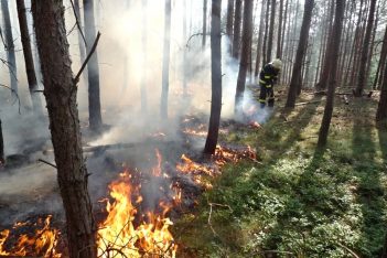Vysoké teploty a nebývalé suchou jsou příčinou dalšího lesního požáru v Českém ráji. Včera ho likvidovali hasiči ze šesti jednotek. Požár byl ohlášen ve 14.49 hodin nedaleko obce Bohuslav, která je částí Hrubé Skály. Požár zasáhl zhruba čtyřhektarovou plochu v kopcovitém terénu kolem Hrubého vrchu. Zatímco nedělní požár v Kacanovech zachvátil paseku s nízkým porostem, tentokrát se požár dostal mezi vysoké stromy. Naštěstí se nešířil přes koruny stromů, ale po zemi hrabankou. Hasiči na likvidaci použili několik vodních proudů i jednoduché hasební prostředky. V terénu bylo nasazeno sedm cisternových automobilových stříkaček. Vodu dopravovali hasiči z Rokytnického rybníku, kde zřídili čerpací stanoviště.