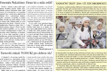 Poslední vydání novin Turnovsko v akci v tomto kalendářním roce. Fenomén divadelního spolku Nakafráno i turnovské Vánoční trhy, ohlédnutí za odcházejícím rokem i vyčerpávající přehled pozvánek na kulturní a sportovní akce. A také přání požehnaných Vánoc a dobrého roku 2017! Ten bude již desátým, ve kterém noviny i web TvA fungují. Děkujeme všem za podporu a za přízeň! První noviny nového roku vycházejí 11. ledna.