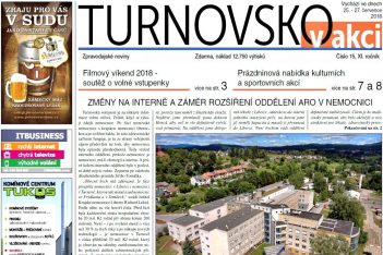 Novinky z turnovské nemocnice, představení firmy Microdent, výzva pro rodáky z Vesce pod Kozákovem. Soutěž o vstupenky na Filmový víkend,…