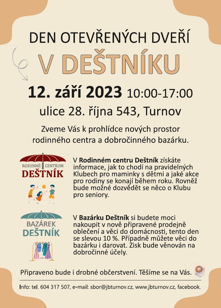 Info – tel. 604 317 507, e-mail: sbor@jbturnov.cz, www.jbturnov.cz.