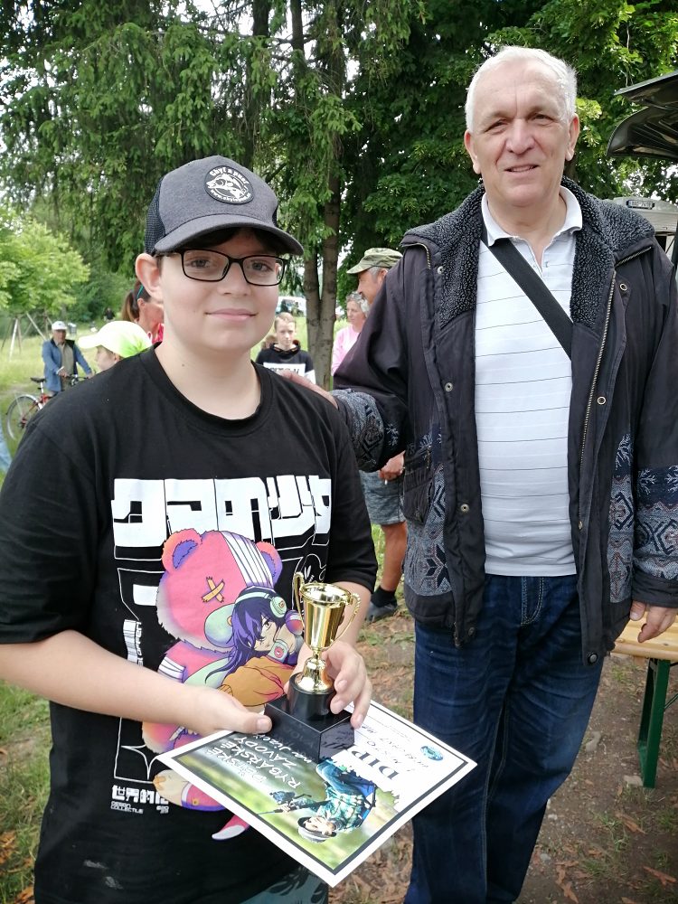 „Máme ve spolku 375 členů a staráme se mimo jiné o část povodí Jizery, která protéká městem. Jen letos jsme do ní vpustili na 500 kaprů,“ řekl dlouholetý předseda spolku Jaromír Dědeček (na snímku s vítězem soutěže). Členové spolku už také několik let vedou rybářský kroužek dětí při volnočasovém zařízení města pro děti a mládež Žlutá ponorka. -gr-