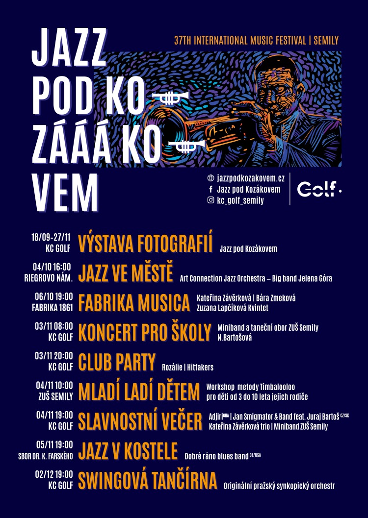 Vstupenky a info k jednotlivým akcím najdete na webu www.jazzpodkozakovem.cz nebo na Facebooku Kulturního centra Golf.