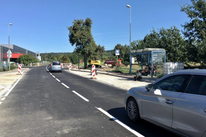 Aktuálně probíhá stavba chodníku z Kamence k benzinové čerpací stanici na Kyselovsku, stavbařům zde chybí zhotovit posledních pár desítek metrů, a stavba sjezdu a nájezdu na průtah ve Fučíkově ulici. Tady bude hotovo až v zimě, tedy stejně jako nový supermarket Billa, který vyrůstá na druhé straně silničního průtahu.