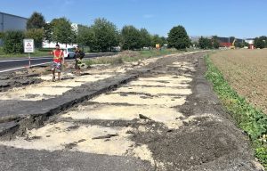Provizorní komunikace sloužila pro zachování obsluhy přilehlého průmyslového areálu nákladními automobily a k zajištění plynulosti provozu během rekonstrukce úseku silnice III/28719. Dalším důvodem bylo, že okolí stavby neumožňovalo zřízení vyhovujících objízdných tras. Po celé léto tak motoristé jezdili po provizorní komunikaci z ne vždy dobře sesazených panelů.