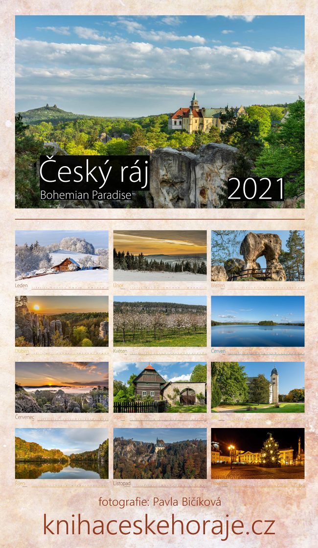 Kromě knížek je zde k dostání nově také mj. nástěnný kalendář Českého ráje na rok 2021 s fotografiemi Pavly Bičíkové.