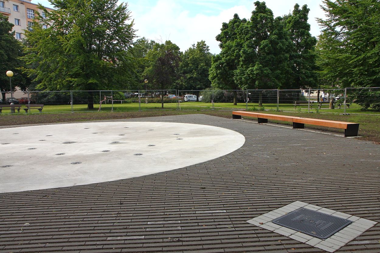 Nový vodní prvek je dokončen, čeká se na ozelenění ploch