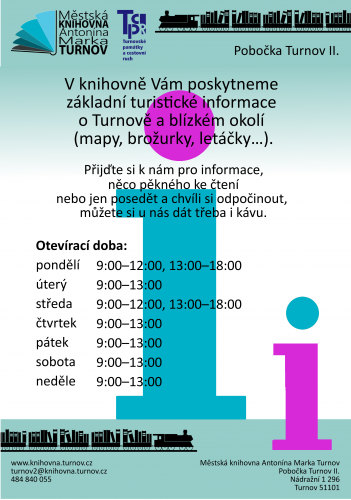 Ve spolupráci s Regionálním turistickým informačním centrem Turnov poskytují pracovníci pobočky knihovny na vlakovém nádraží základní turistické informace o městě a blízkém okolí. Navíc si zde je možné vzít různé propagační materiály (mapky, letáčky, brožury). Knihovna proto změnila i otevírací dobu. Během července a srpna bude otevřeno každý den.
