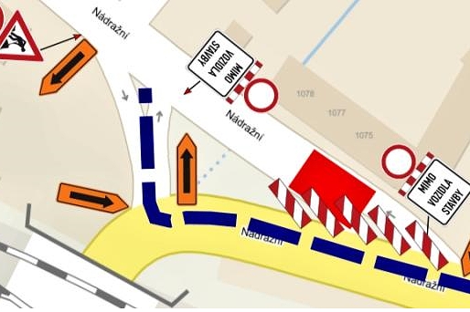 Zhruba do poloviny příštího týdne bude kvůli opravě kanalizace omezen provoz v Nádražní ulici nedaleko křížení s ulicí Prouskovou. Místo se objíždí „véčkem“ spodní části křižovatky u viaduktu.
