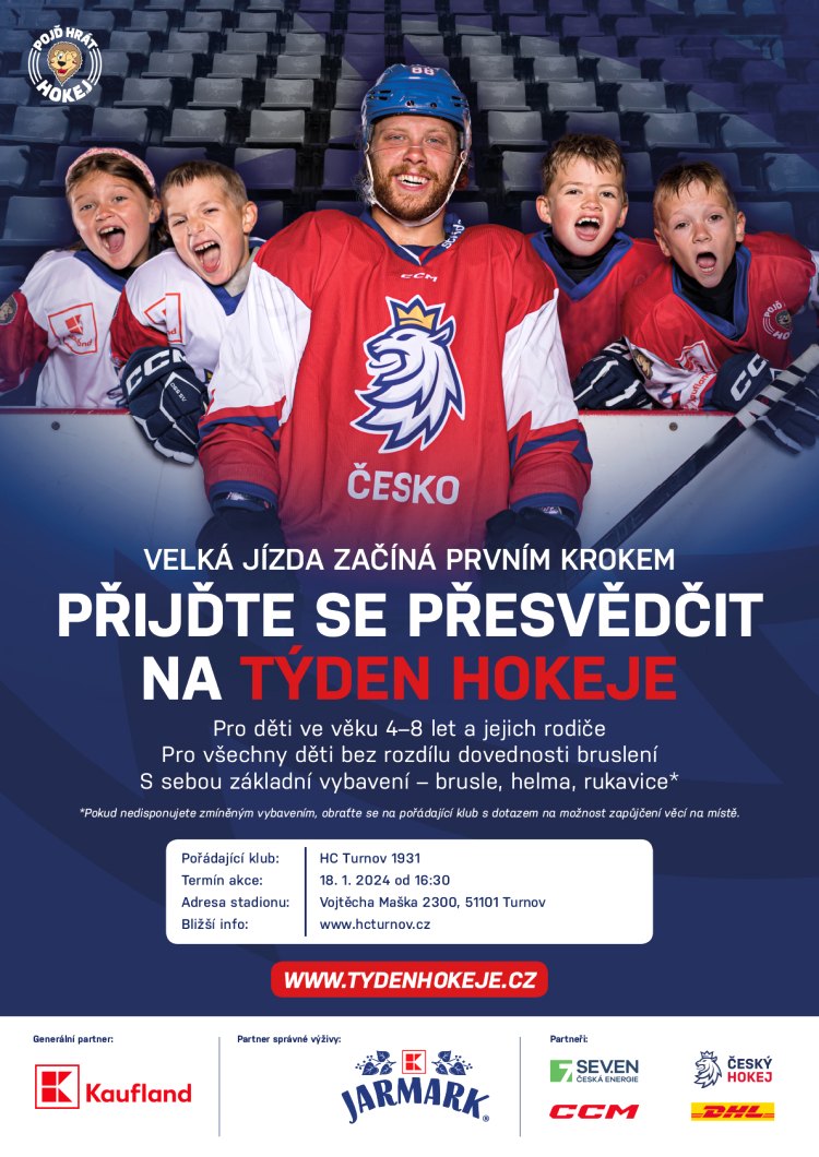 Nábor hokejistů do klubu HC Turnov 1931 pro děti ve věku 4-8 let. Pro všechny děti bez rozdílu dovednosti bruslení. S sebou vezměte základní vybavení – brusle, helmu a rukavice (pokud vybavení nemáte, kontaktujte pořádající klub).