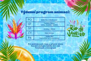 I v tomto týdnu se můžete v areálu koupaliště v Maškově zahradě těšit na doplňkový kulturní program. Každý den se něco děje, celý týden se ponese na téma Rio de Janeiro.