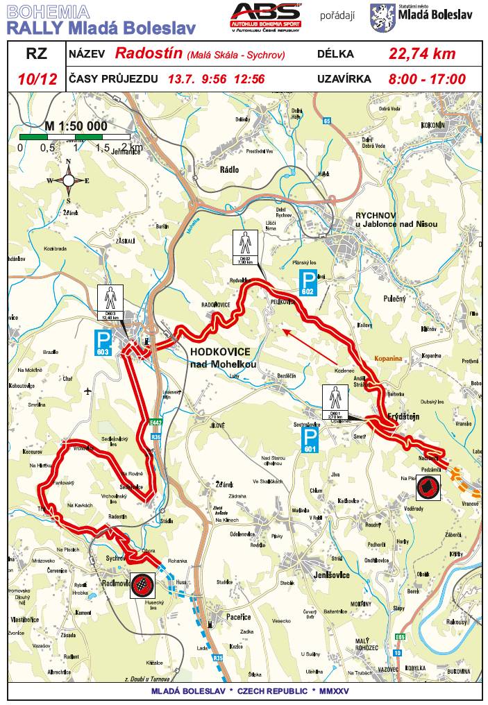 V našem regionu nejoblíbenější rychlostní zkouška „Kvítkovice“ se jede v neděli 13. července od 9:21 do 12:21 hodin. Trasa je všem fanouškům rally dobře známá. Na ni bezprostředně navazuje RZ „Radostín“ se startem mezi Malou Skálou a Frýdštejnem od 9:56 hodin.