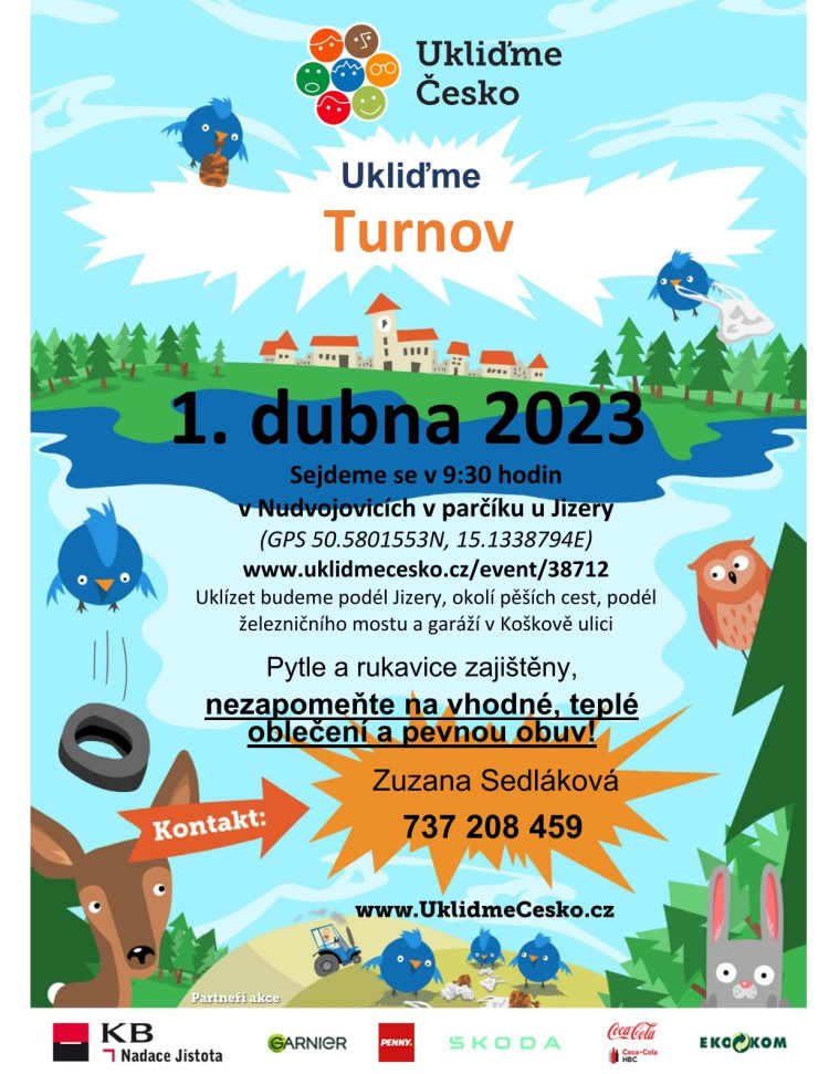 V sobotu 1. dubna se město Turnov, zastoupené odborem životního prostředí, připojí k celorepublikové výzvě Ukliďme Česko. Srdečně vás zveme na společný úklid v našem městě.
