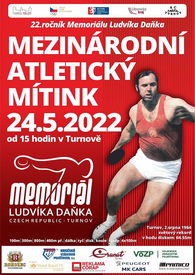 Pokračuje týden oslav 750 let Turnova. V úterý 24. května do Turnova přijede Legiovlak a Turnovem projede vlak poháněný vodíkem (viz ZDE), to zásadní ale začíná v 15.00 hodin na Městském atletickém stadionu Ludvíka Daňka. Zde proběhne 22. ročním Memoriálu Ludvíka Daňka.