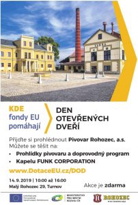 * DEN OTEVŘENÝCH DVEŘÍ V PIVOVARU ROHOZEC od 10.00 do 19.00 hodin (více ZDE). Komentované exkurze do výrobny (předchozí registrace), malá ochutnávka nefiltrovaného piva. V rámci akce je připraven doprovodný program: All Stars mažoretky Turnov, barmanská show – hotelová škola, hudební vystoupení – ukulele a kytara DDM Vikýř Jablonec n. N., Nisanka, folklorní soubor z Jablonce n. N., kapela Funk Corporation, tvořivé dílničky Domu přírody Českého ráje, prohlídka techniky Horské služby, skákací hrad pro děti, fotokoutek a malování na obličej, soutěže o zajímavé ceny a zábava pro všechny. Akce je zdarma. Probíhá pod záštitou Ministerstva pro místní rozvoj ČR a Euro centra Liberec. Více na https://www.dotaceeu.cz/cs/Jak-ziskat-dotaci/Akce/DoD-v-pivovaru.