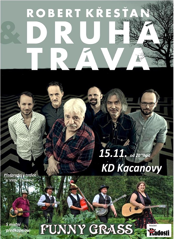 * ROBERT KŘESŤAN A DRUHÁ TRÁVA. Koncert v KD Kacanovy od 20.00 hodin.