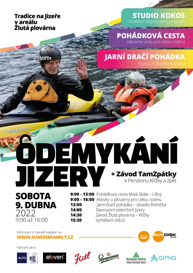 * ODEMYKÁNÍ JIZERY 2022. Vodáci se po dvouleté pauze sejdou, aby společně symbolicky otevřeli řeku Jizeru a odstartovali tak novou vodáckou sezonu. Slavnostní odemykání řeky je připraveno na 14. hodinu u Žluté plovárny v Malé Skále. Společnost Sundisk zde připravila celodenní program. Ve spolupráci s obcí Líšný je připravena pohádková cesta z Malé Skály do Líšného (od 9.00 do 13.00 hodin). Od 9.00 hodin jsou u Žluté plovárny k dispozici různé aktivity pro rodiny s dětmi. O hudební doprovodný program se postará jablonecké studio Kokos a ve 13.00 hodin se představí loutkové divadlo Rolnička s Jarní dračí pohádkou. Ve 14.00 hodin proběhne odemykání Jizery, následuje tradiční závod Tamzpátky. Vodáci poplují k Penzionu Křížky, kde vymění lodě za koloběžky a po cyklostezce Greenway Jizera se vrátí zpět na plovárnu. Více najdete na www.sundiskfamily.cz.