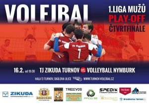 * VOLEJBAL, 1. liga: Čtvrtfinálové utkání play-off TJ Zikuda Turnov – Volleball NYMBURK. Rozhodující páté utkání se odehraje na turnovské palubovce od 19.30 hodin.
