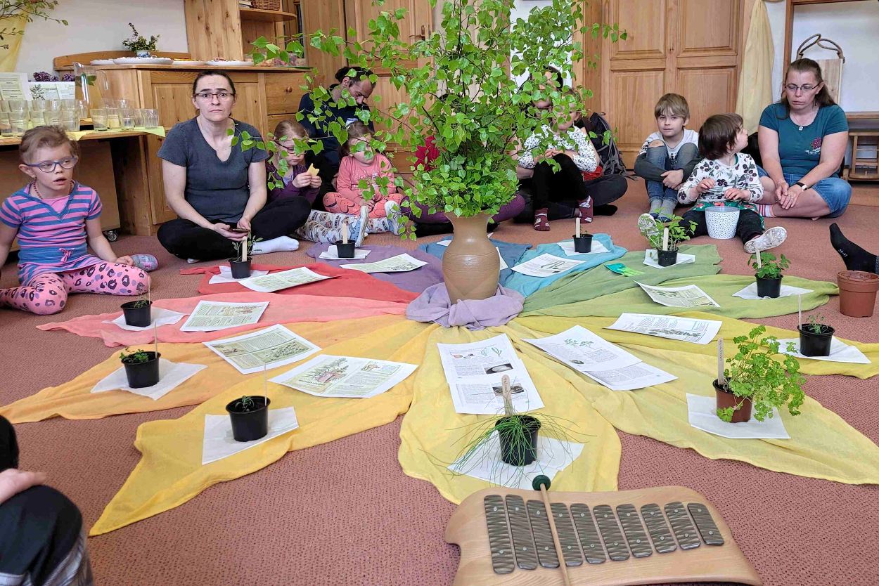 První květnový týden jsme v naší mateřské škole uskutečnili „Bylinkovou dílnu“, na které jsme si povídali o bylinkách a jejich léčivých účincích. Náš dodavatel mléčných výrobků, Tompeli Huntířov, nám daroval některé jejich produkty (sýry, zakysanou smetanu, tvaroh a mléko) a tak jsme si mohli vyrobit i ochutnat pomazánky, dipy i čerstvé sýry právě v kombinaci s námi vypěstovanými bylinkami a chlebem či suchary dalšího našeho dodavatele – Špetky Turnov. Rodiče a prarodiče si přesadili s dětmi bylinky podle jejich výběru a vyrobili bylinkový zápich. Společně jsme si tak mohli posedět, popovídat si nejen o bylinkách, a ochutnat spoustu mléčno-bylinkových dobrot a domácích limonád. K nahlédnutí byly i knihy o bylinkách, které rádi v naší výuce používáme.