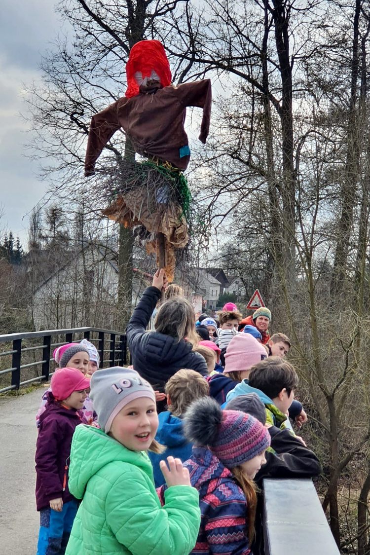 Děti ze Základní a mateřské školy ve Všeni tradičně vynesli Moranu a rozloučily se tak se zimou a nemocemi.