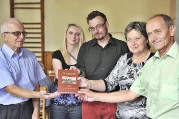 KARLOVICE SLAVÍ 500 LET Na snímku tvůrci knihy k pětistému výročí Karlovic (zleva: Slavomír Říman, manželé Jakubcovi, starostka obce Vlasta…