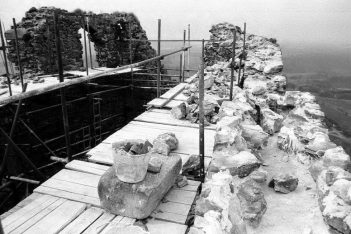 Opravy na věži Baba (vyhlídkové schodiště zde v tuto dobu ještě nebylo.