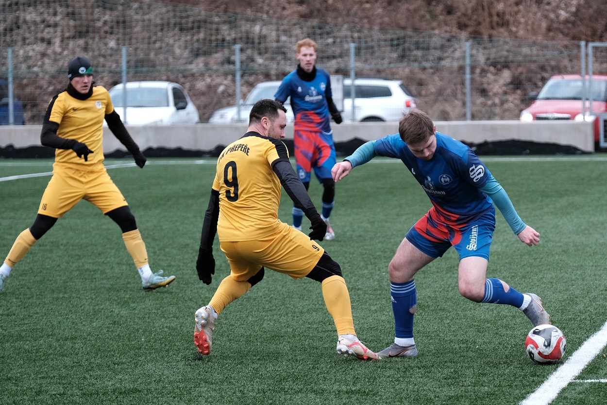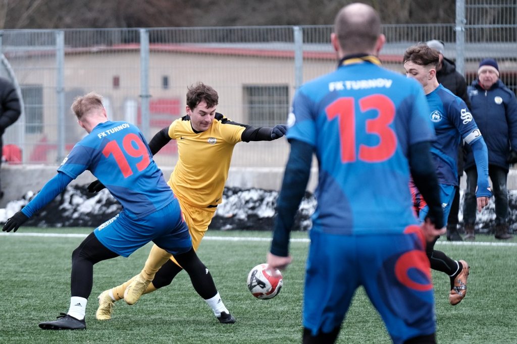 Zajímavou konfrontaci dvou našich zástupců v celostátních fotbalových soutěžích nabídla sobota 27. ledna. V rámci zimní přípravy se na umělé trávě Městského fotbalového stadionu v Turnově utkal domácí divizní celek s třetiligovým FK Přepeře. V první půli si oba soupeři vypracovali po jedné stoprocentní šanci, ale ani jedna strana nedokázala dostat míč až do sítě. Asi šedesátku promrzlých diváků tak rozehřál jediný moment, v němž domácí zaútočili po levé straně, přešli přes Dočekala do vápna a po sérii (ne)šťastných odrazů doskákal balon až na zadní tyč Truksovy branky, kde vše zavřel Holub a v akrobatické pozici zajistil Turnovu vedení.