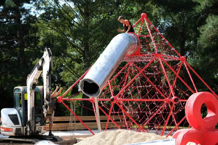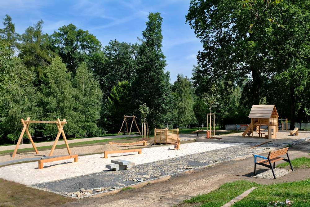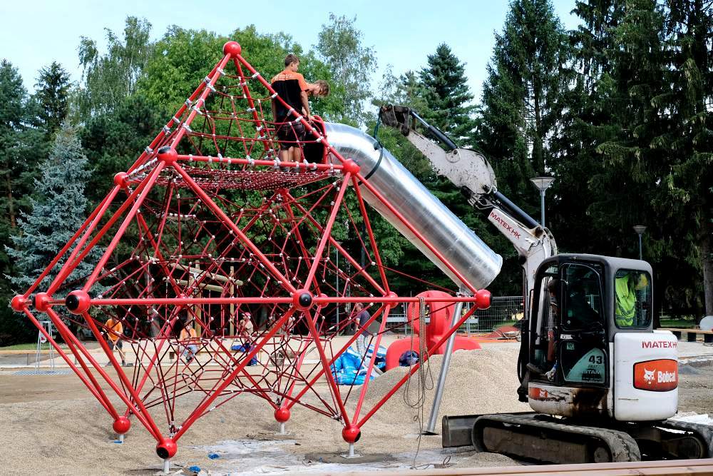 * V parku u letního kina dostává finální podobu velké hřiště pro větší děti, které bude slavnostně otevřeno 4. září. Staví ho firma Matex, náklady jsou 7,9 mil. Kč.