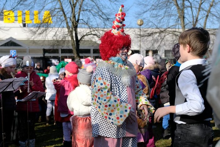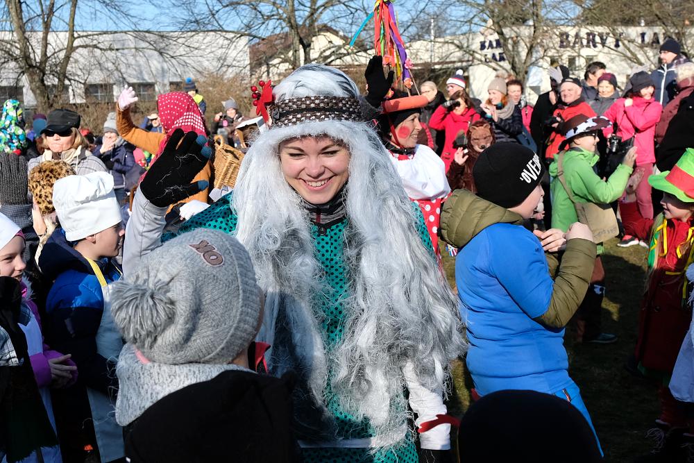 Na 200 dětí ze školy v Alešově ulici, učitelky i vychovatelky došly průvodem od školy až k prodejně Billa, kde již čekali zvědaví přihlížející. „Společně jsme si všichni zazpívali, zatancovali, příchozí také ochutnali masopustní dobroty, které pro ně připravily maminky a babičky našich žáků! Těm moc děkujeme,” chválí ochotu rodičů Vendula Bičíková.