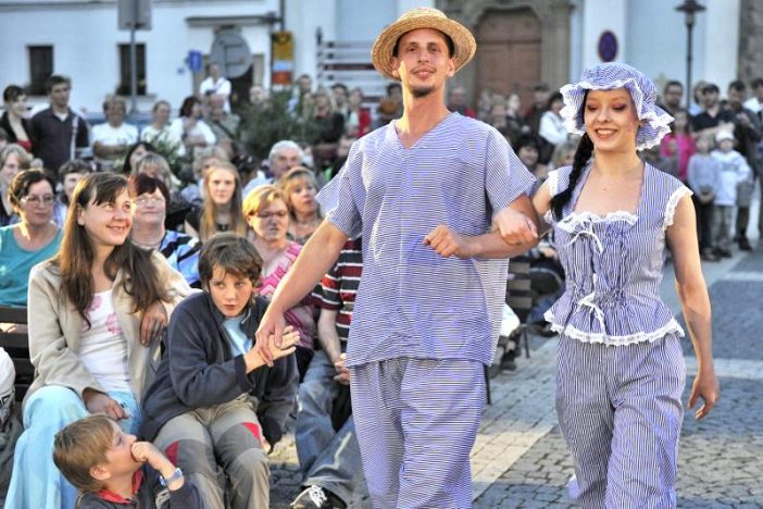 KÁMEN A ŠPERK: JEDEN Z VRCHOLŮ SEZONY Prázdninové Turnovsko má za sebou jednu z největších akcí sezony, ne-li akci největší. Devátý ročník „Kamene a šperku v Českém ráji“ se opravdu vydařil. Počasí bylo tak akorát na podobnou přehlídku šperkařů a kamenářů, z nichž mnozí přímo na místě předváděli svůj um, tržiště tradičních výrobků a doprovodný program byly v duchu staletých tradic regionu. Po celou sobotu 6. července bylo náměstí zaplněno návštěvníky, kromě domácích ve velké míře i turistů, pro něž je představení města jako centra kamenářů a šperkařů určeno především. Vrcholem byla večerní módní přehlídka napříč staletími a jednotlivými styly v oblékání do společnosti či k vodě (na snímku), na kterou se přišly podívat zhruba čtyři stovky lidí. Závěr patřil ohňostroji. Akce Kámen a šperk pokračuje na několika místech i v následujících dnech. Více přineseme v samostatné reportáži.