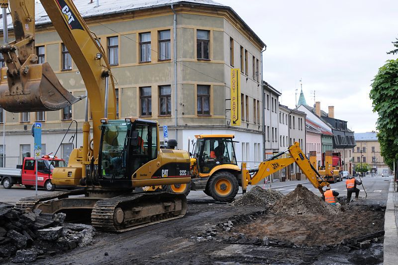 Sobota 15. května. Snímek byl pořízen odpoledne na rohu ulice 5. května a Havlíčkova náměstí. Začala hlavní část rekonstrukce kanalizace v rámci projektu Čistá Jizera přímo v centru Turnova. V noci ze 14. na 15. května byly za asistence státní a městské policie vyznačeny objížďky, spuštěny semafory na Mariánském náměstí a v Markově ulici. Ulice 5. května je neprůjezdná od náměstí po křižovatku s Kinského a Husovou ulicí. Pro místní a přespolní řidiče bude těžké se zorientovat v novém dopravním značení, resp. si zvyknout na dopravní zácpy, které centrum čekají. Nejdůležitější část prací bude hotova do 7. června, celá ulice od náměstí až na novou kruhovou křižovatku na Hruštici bude dokončena na jaře 2012!