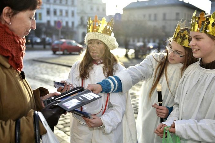 TURNOV SE ZAPOJIL DO TŘÍKRÁLOVÉ SBÍRKY V pondělí 6. ledna odpoledne prošli Turnovem od náměstí po domov důchodců Pohoda a zpět do vestibulu obchodního domu Tesco Tři králové v podobě mladých dívek ze zdejší organizace Orel. Podle Marie Šídové, která dívky doprovázela, reagovali lidé různě, většinou, protože se o celostátní sbírce docela ví, pozitivně. „Hlavně rodiče s malými dětmi byli velmi mile překvapeni naší přítomností, pro děti byla děvčaty v kostýmech Kašpara, Melichara a Baltazara atrakcí. Byli jsme i mezi seniory v domově důchodců, tam to bylo až dojemné,“ přiblížila Šídová. Koledníky budete moci v turnovských ulicích potkat i v úterý 7. ledna. Vybrané peníze budou věnovány místnímu Centru pro rodinu Náruč, o. s. Více o Tříkrálové sbírce najdete na adrese http://www.trikralovasbirka.cz/o-sbirce/. Tři králové je lidovým označením pro mudrce – mágy (neboli hvězdopravce), kteří podle novozákonních evangelií navštívili krátce po narození Ježíše v Betlémě a přinesli mu zlato, kadidlo a myrhu. 6. ledna se píše posvěcenou křídou na dveře domů a chlévů zkratka K+M+B+ nebo latinský ekvivalent C+M+B+ (Casparus-Kašpar). Tyto iniciály Tří králů původně znamenají Christus mansionem benedicat – ať Kristus požehná tomuto příbytku po celý rok, proto se za třetí křížek píše letopočet. Tři křížky symbolizují Nejsvětější trojici, tj. Otce, Syna i Ducha Svatého. Nejsou to tedy znaménka „plus“ mezi iniciálami.
