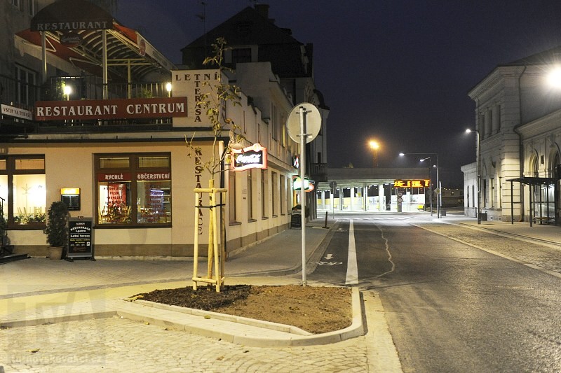 DOPRAVNÍ TERMINÁL JE OTEVŘEN Jako významný den v historii Turnova se zapíše pátek 4. listopadu. Dopoledne byl slavnostně otevřen nový dopravní terminál u vlakového nádraží. Turnovská hromadná doprava tak bude soustředěna do jednoho celku. Prostor před nádražní budovou se změnil k nepoznání. Nové povrchy, chodníky, lavičky, veřejné osvětlení, parkoviště, konečně bezblátivý přístup k poště a na druhé straně přednádražního prostoru impozantní stavba vlastního autobusového nádraží. Mohutné pilíře, které možná jednou v budoucnu ponesou i parkovací dům. Turnov moderním terminálem definitivně vstoupil do 21. století, nyní bude záležet, jak pro své potřeby dokáže integrované hromadné dopravy využít. O tom ale více přineseme v samostatném článku, nyní máte možnost v obrazovém bloku na FACEBOOKU TvA seznámit se s novou dopravní stavbou s atmosférou nočního osvětlení. Terminál je ještě ztichlý, ostrý provoz začne v neděli 6. listopadu.