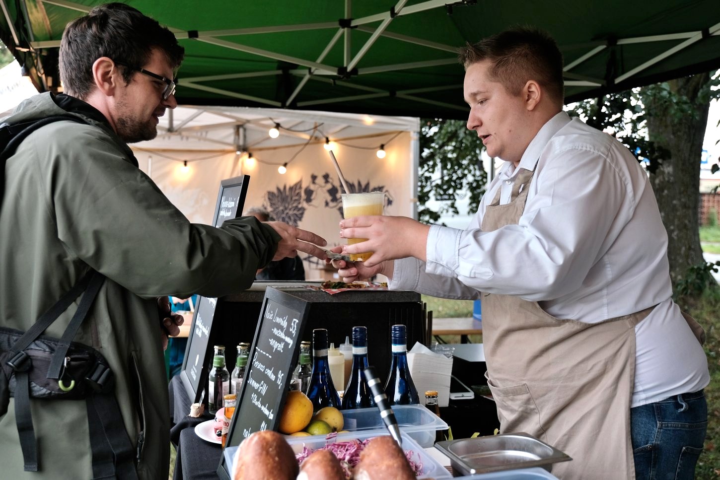 pohledu občerstvení je smyslem příchozím nabídnout něco jiného než opečenou klobásu a párek v rohlíku. V nabídce tak byly originální burgery, značkové moravské víno, mexická kuchyně, pivo z malého pivovaru, nechyběla výtečná pražená káva. Kuchaři předváděli svůj um přímo na místě, součástí správného gastronomického zážitku je samozřejmě i servírování. „I v papírových krabičkách a na táccích jídlo může být pěkné i napohled,“ uvedl jeden z prodejců, který nabízel bezkonkurenční koleno na grilu.