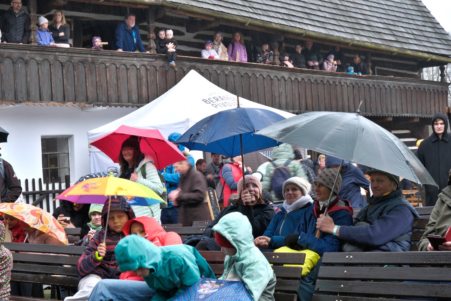 Počasí v sobotu 4. dubna bylo typicky aprílové. Dopoledne sice pod mrakem, ale vcelku příjemně, těsně po poledni přišel drobný déšť, a když už to vypadalo, že se vše přežene, nebesa se otevřela a pršelo poměrně vydatně. V podvečer pak dokonce svítilo sluníčko. Nic horšího si pořadatel akce, odehrávající se pod širým nebem, nepřeje. I tak ale na tradiční Velikonoce na Dlaskově statku dorazilo výrazně přes tisíc lidí. Jde o setkání, které nejen zahajuje sezonu na této významné památce lidové architektury, ale je také symbolickou akcí, která definitivně odděluje zimu od jara. I proto ji už řadu let vyhledávají kromě místních především návštěvníci z Liberecka a Jablonecka, kde si jaro každoročně dává načas.