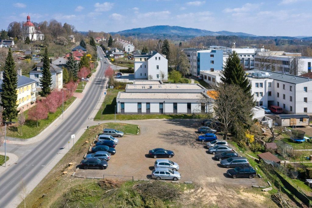 Bytové domy v ulici 5. května. Na místě parkoviště u Alzheimer centra vyroste komplex tří vzájemně propojených budov s celkem 32 byty k pronájmu, které budou prioritně poskytnuty potřebným profesím, jako jsou hasiči, policisté, učitelé a další. Stavba za přibližně 126 mil. Kč právě začíná kácením dřevin, hotovo bude v příštím roce.