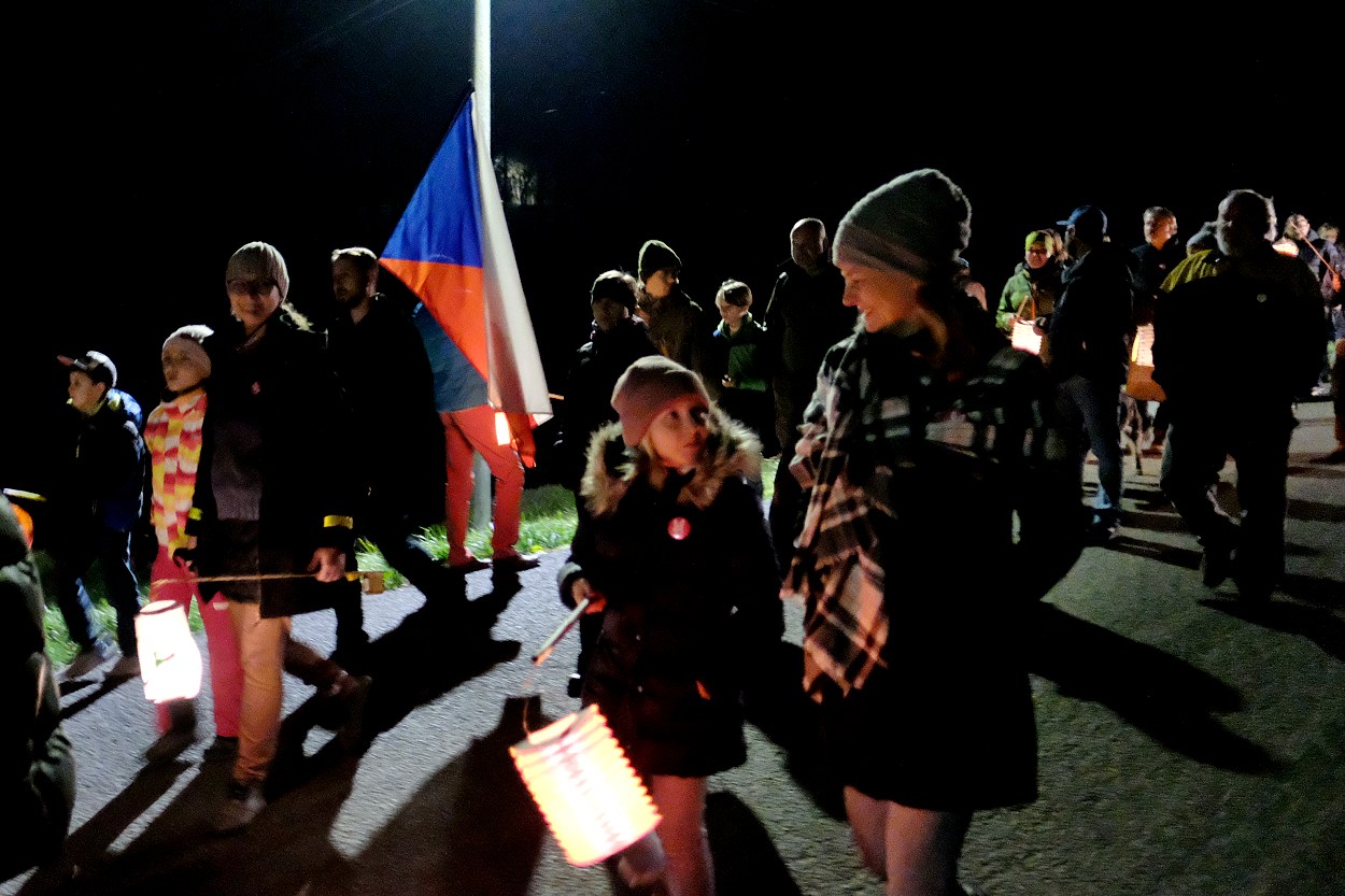 Zhruba stovka lidí se vydala v pátek 15. listopadu vpodvečer na lampionový průvod napříč Kacanovy od Hotelu Králíček po zdejší kulturní dům a Tibetský altánek. Po cestě si mohli děti a dospělí v kostce připomenout významné události z naší historie od roku 1939 do dnešních dnů. Zastavili se zejména u významných mezníků našich dějin, jako byly roky 1945, 1948, 1968, 1977 a 1989 a ve svobodných letech hlavně u dat přijetí do EU a NATO. V závěru setkání promluvil Ivan Gabal, jeden ze zakladatelů Občanského fóra a blízký spolupracovník Václava Havla. Ten naši současnost shrnul především do nutnosti zachování právního státu, který zatím podle něho v naší zemi funguje. Jako výzvu pro dnešek vyzdvihl především dění v okolním světě. „Dlouhé období, kdy jsme si mysleli, že liberální vnitřní poměry našeho státu nám zajišťují instituce zvenčí, končí. Letos jsem si prvně uvědomil, že NATO není nesmrtelné, a že se nám to hodně klíží především ze strany Turecka, ale i USA. Řadu věcí jsme považovali za danost, nemusí to tak být, proto se domnívám, že to, před čím nyní stojíme, je začít si dělat starost o vnější rámec naší demokracie, abychom mohli zachovat liberální poměry uvnitř.“
