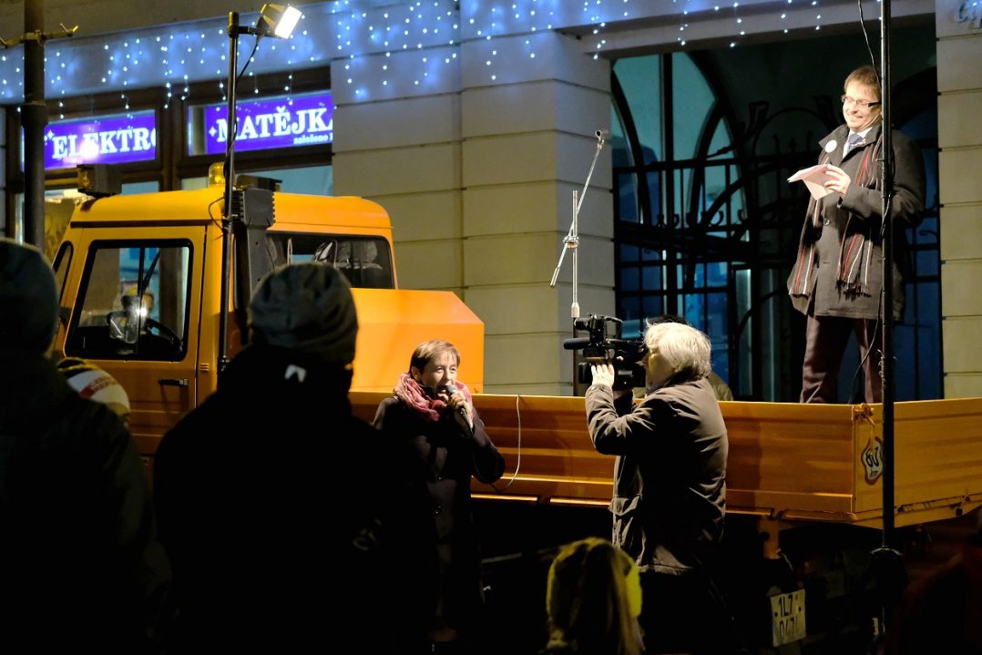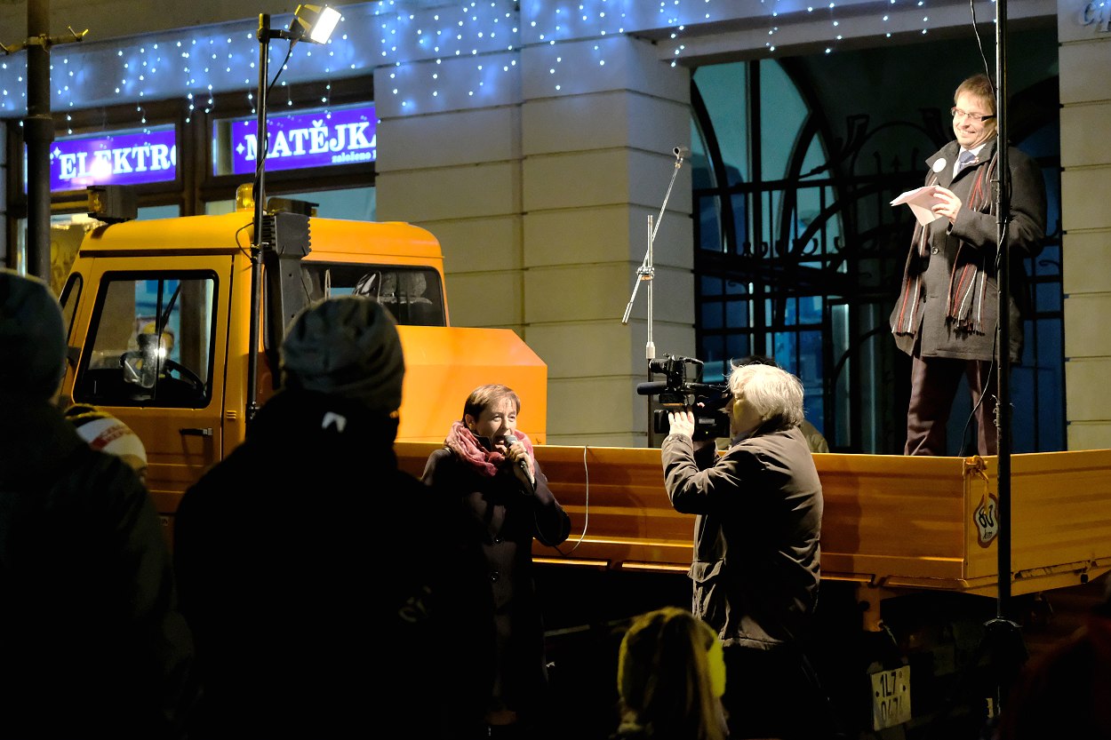 V neděli 17. listopadu se asi tři stovky lidí sešly v 17.00 hodin na turnovském náměstí v místech, kde v listopadu 1989 stávala legendární multikára, ze které mluvili tehdejší řečníci, třeba bývalý starosta Václav Šolc.