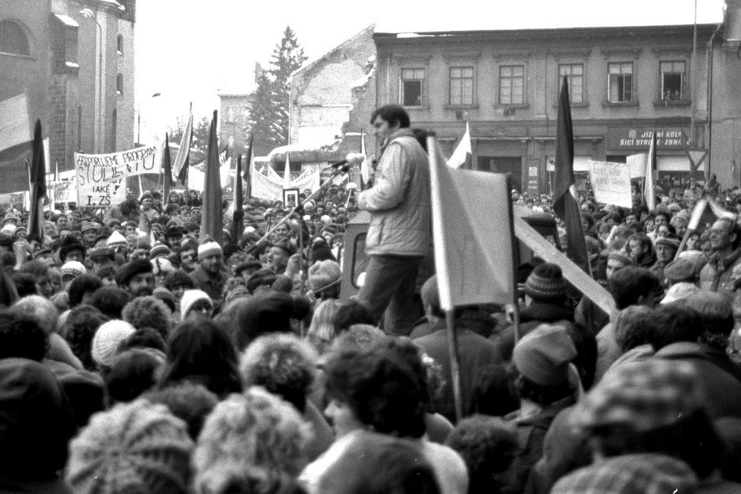 * Pondělí 20. 11. Ve městě se objevily první letáky, hlavní výlepní plocha je ve výloze prodejny nábytku na náměstí (dnes výloha OD Helia), v podvečer se tady konalo první improvizované setkání.