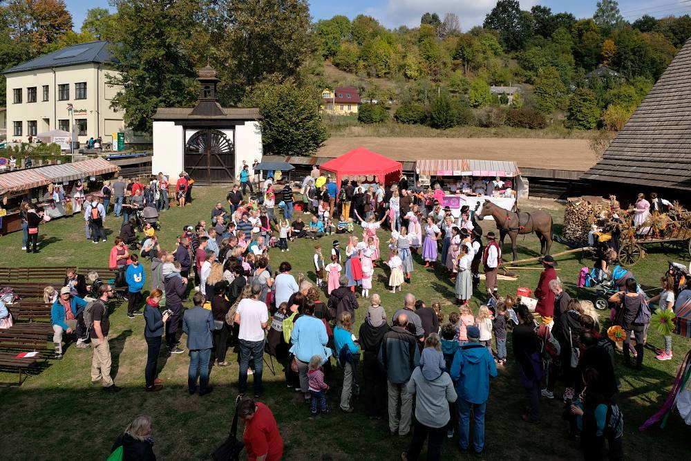 V pátek 28. září byl na statku připraven opravdu pestrý program. Dožínková slavnost v podání folklorního souboru Šafrán z Jablonce nad Nisou přiblížila významnou událost v životě našich předků, připraveny byly hry a tvořivé dílny pro děti, v areálu probíhal i řemeslný trh.