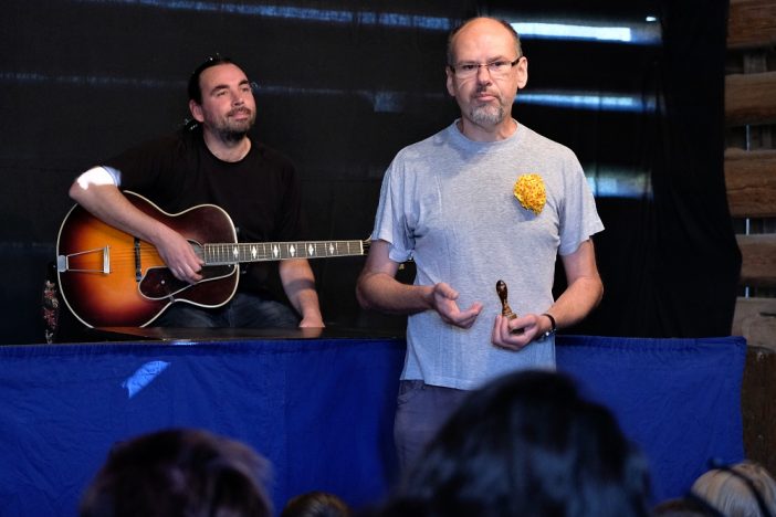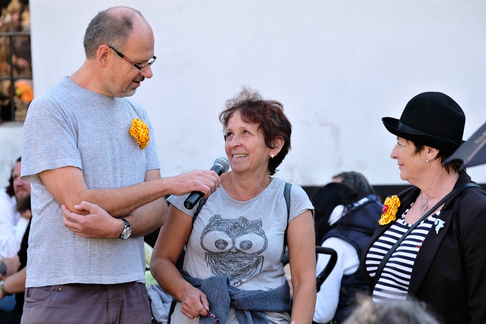 Za hojnou účast a podporu poděkoval principál souboru Na Židli Petr Záruba, který ho vede již od roku 1993. V současné době jeho členové sehrají mezi padesáti a šedesáti představeními ročně, nejhranější pohádkou je O slepičce kropenaté, která je na repertoáru od roku 1983. Na akci zavítalo také několik bývalých členů souboru, mj. třeba Jana Salabová (za svobodna Vávrová), která byla v roce 1978 zakládající členkou souboru. Připomněla také, odkud se vzal název. Hráli tehdy nejvíce pohádku Princezna mušlička, a protože soubor neměl žádné kulisy asi scénu, musel vzít zavděk židlemi, ze kterých vzniklo improvizované jeviště. Od té doby je to tedy soubor Na Židli Turnov.