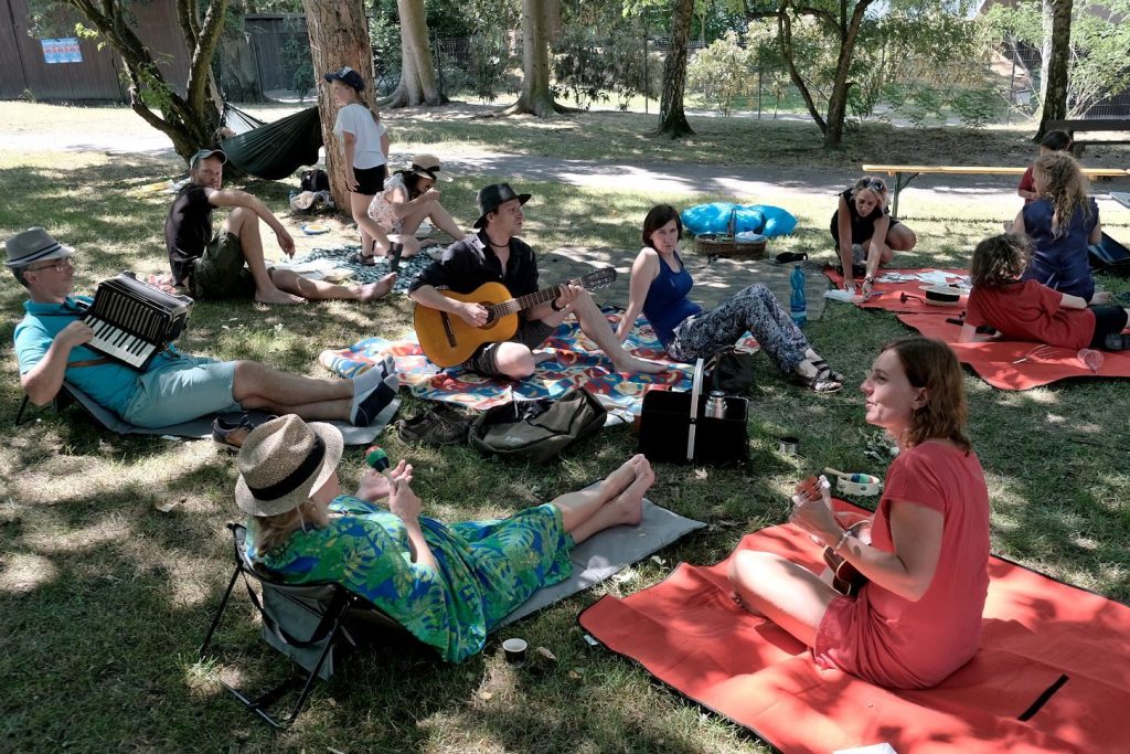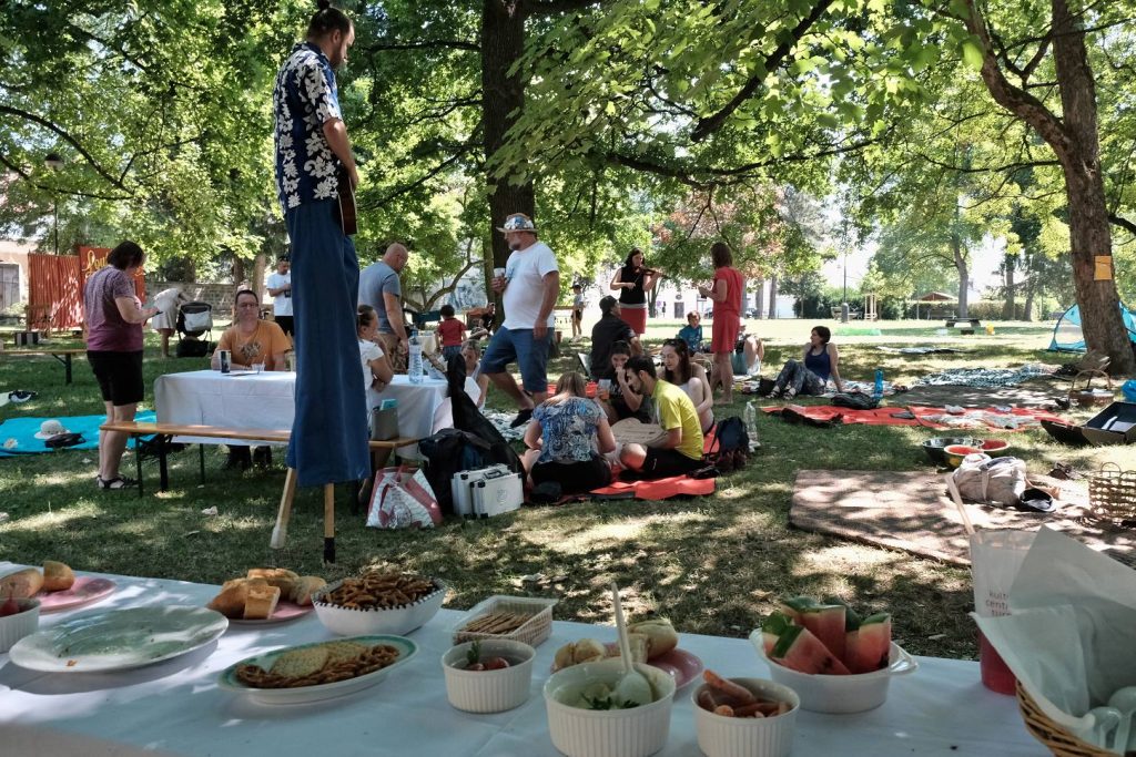 Ta byla citelná i několik stovek metrů dál v parku u letního kina. Zde se pod patronací spolku Kulturnov uskutečnila akce nazvaná Sousedění. Piknik, kam každý mohl přinést a nabídnout ostatním nějaké občerstvení. Mohli jste jen tak posedět pod stromy a společně si zazpívat, pro děti tu byl napuštěný bazének, deskové hry, loutky…