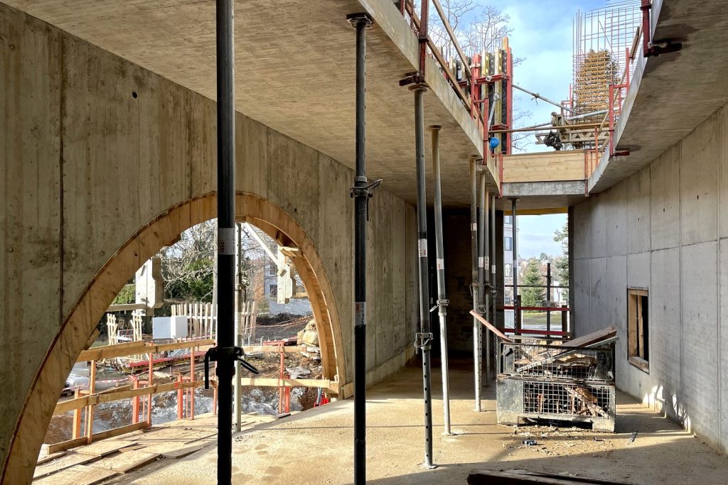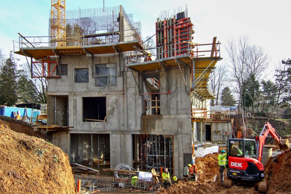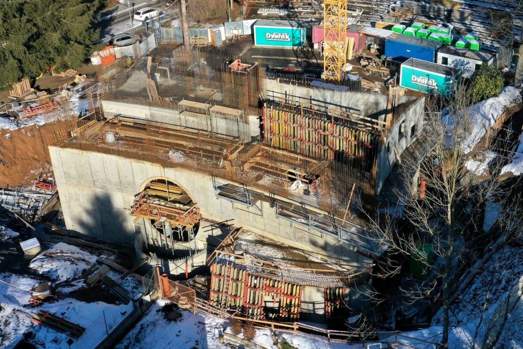 - Na stavbě knihovny se provádějí betonáže stěn prvního nadzemního podlaží